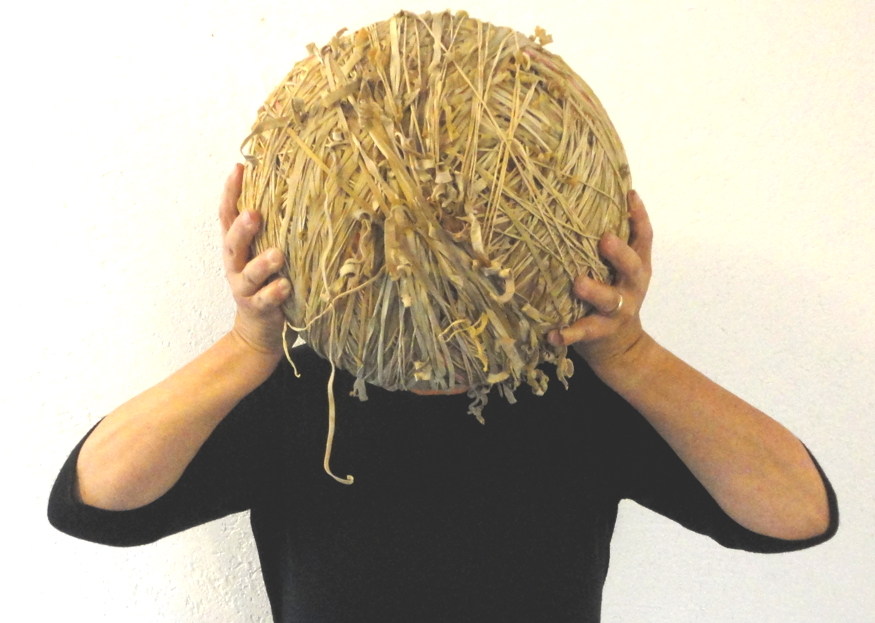 (Viele Jahre hab ich einfach ein Gummiband nach dem anderen um die Kugel gespannt. Sie wurde immer dicker. Alle mochten und mögen sie und waren/sind fasziniert. Jetzt kommt sie in eine Ausstellung. Spannend!)